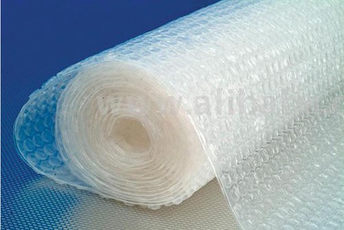 氣泡膜,是以高壓聚乙烯為主要原料,再添加增白劑、開(kāi)口劑等輔料,經(jīng)230度左右高溫?cái)D出吸塑成氣泡的產(chǎn)品。是一種質(zhì)地輕、透明性好、無(wú)毒、無(wú)味的新型塑料包裝材料,可對(duì)產(chǎn)品起防濕、緩沖、保溫等作用。也叫氣泡墊。由于氣墊膜中間層充滿空氣,所以體輕、透明、富有彈性,具有隔音、防震、防磨損的性能,廣泛用于電子、儀表、陶瓷、工藝品、家用電器、自車行,廚房、家具和漆品制品、玻璃制品及儀器等抗震性緩沖包裝。可制成氣泡袋、氣泡牛皮紙信封袋、汽車太陽(yáng)擋、隔熱座墊、隔熱保溫材料等。通過(guò)在塑料原料中加入不同的添加劑更可以制造防靜電等各種專用氣墊膜。防靜電氣墊膜用于包裝電子元件、組件,如板、卡等,能防止靜電又能起到緩沖防振的作用。